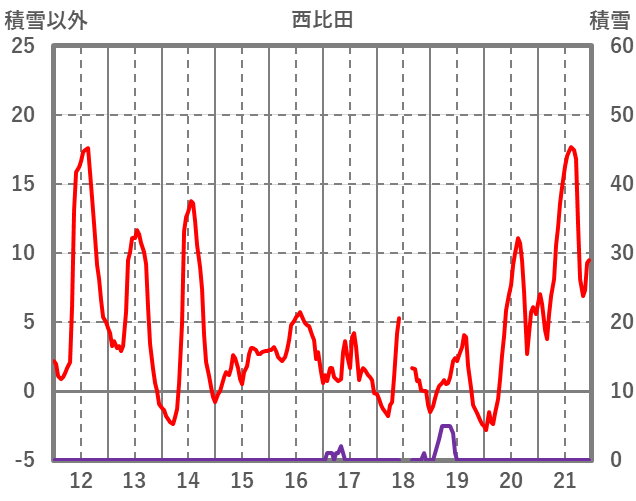 | 日 | 時 | 気温 | 降水 | 風向/風速 | 日照 | 積雪 | 降雪 |