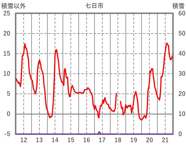 | 日 | 時 | 気温 | 降水 | 風向/風速 | 日照 | 積雪 | 降雪 |