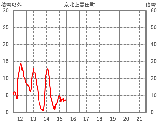 | 日 | 時 | 気温 | 降水 | 風向/風速 | 日照 | 積雪 | 降雪 |