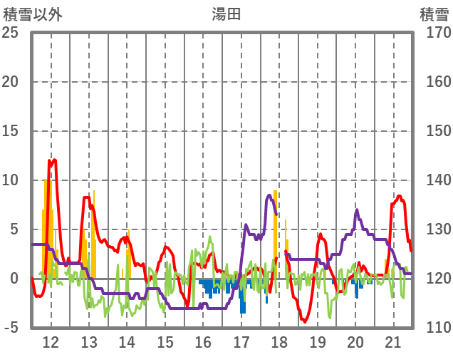 | 日 | 時 | 気温 | 降水 | 風向/風速 | 日照 | 積雪 | 降雪 |