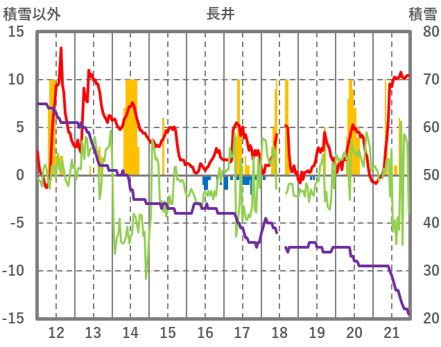 | 日 | 時 | 気温 | 降水 | 風向/風速 | 日照 | 積雪 | 降雪 |