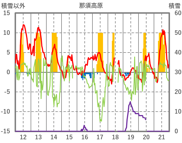 | 日 | 時 | 気温 | 降水 | 風向/風速 | 日照 | 積雪 | 降雪 |