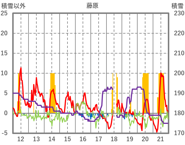 | 日 | 時 | 気温 | 降水 | 風向/風速 | 日照 | 積雪 | 降雪 |