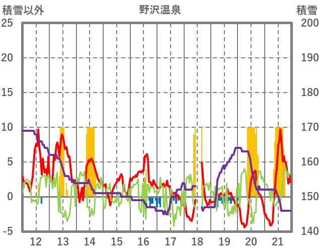 | 日 | 時 | 気温 | 降水 | 風向/風速 | 日照 | 積雪 | 降雪 |