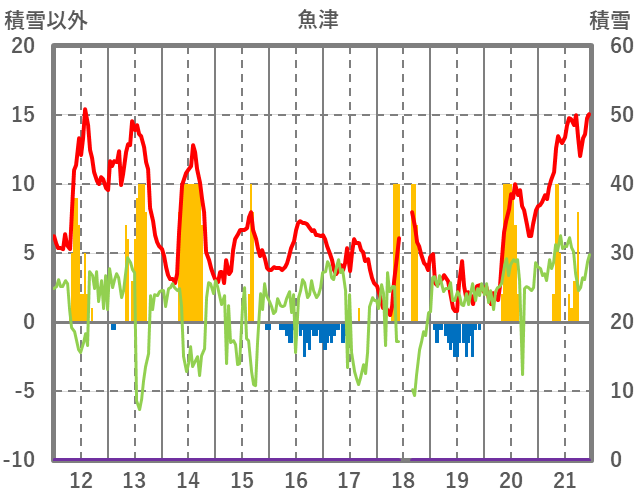 | 日 | 時 | 気温 | 降水 | 風向/風速 | 日照 | 積雪 | 降雪 |