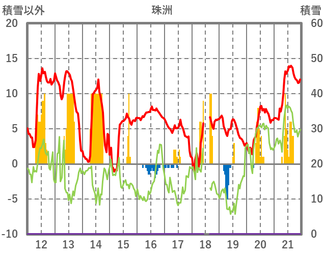 | 日 | 時 | 気温 | 降水 | 風向/風速 | 日照 | 積雪 | 降雪 |