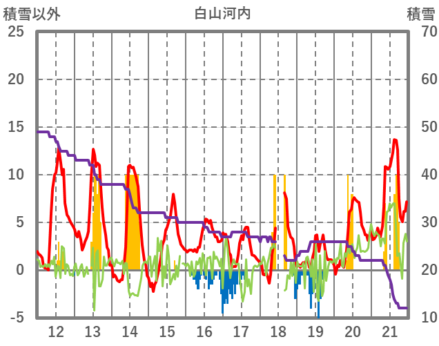 | 日 | 時 | 気温 | 降水 | 風向/風速 | 日照 | 積雪 | 降雪 |