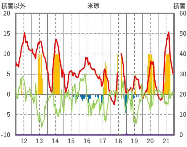| 日 | 時 | 気温 | 降水 | 風向/風速 | 日照 | 積雪 | 降雪 |