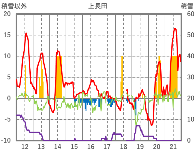 | 日 | 時 | 気温 | 降水 | 風向/風速 | 日照 | 積雪 | 降雪 |