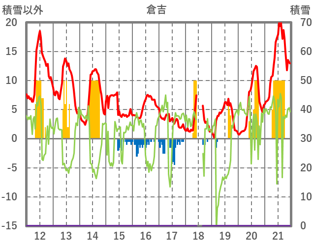 | 日 | 時 | 気温 | 降水 | 風向/風速 | 日照 | 積雪 | 降雪 |