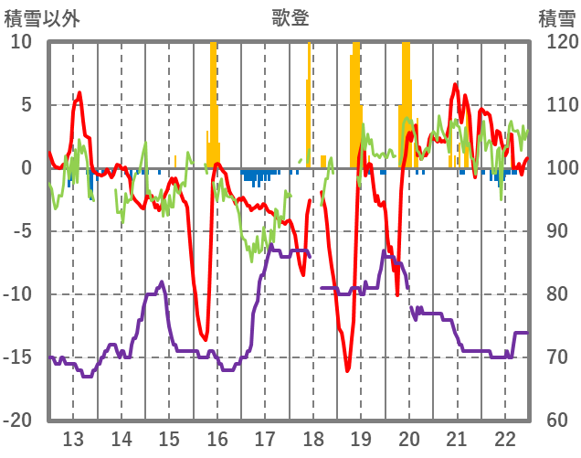 | 日 | 時 | 気温 | 降水 | 風向/風速 | 日照 | 積雪 | 降雪 |