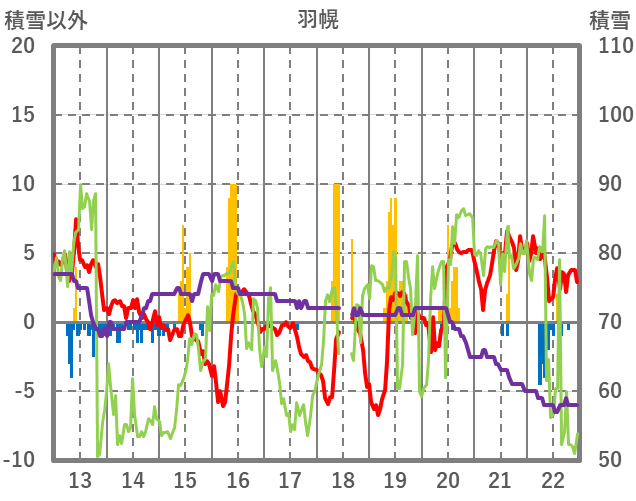 | 日 | 時 | 気温 | 降水 | 風向/風速 | 日照 | 積雪 | 降雪 |