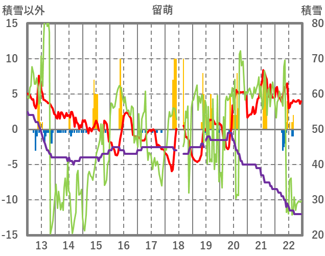 | 日 | 時 | 気温 | 降水 | 風向/風速 | 日照 | 積雪 | 降雪 |