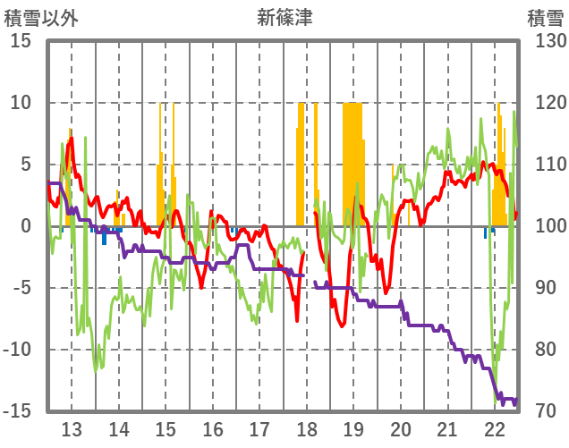 | 日 | 時 | 気温 | 降水 | 風向/風速 | 日照 | 積雪 | 降雪 |
