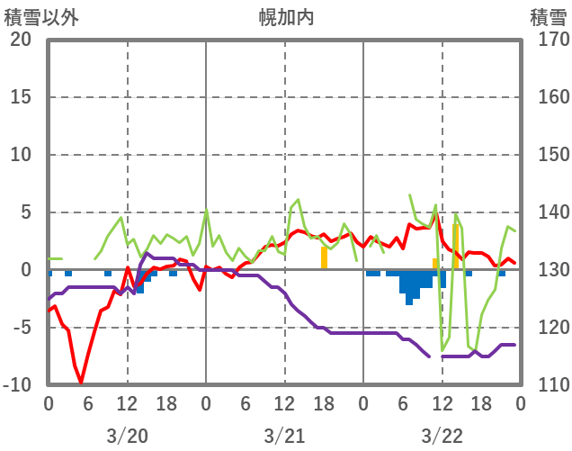 | 日 | 時 | 気温 | 降水 | 風向/風速 | 日照 | 積雪 | 降雪 |