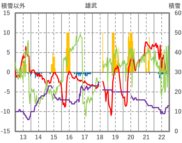 | 日 | 時 | 気温 | 降水 | 風向/風速 | 日照 | 積雪 | 降雪 |