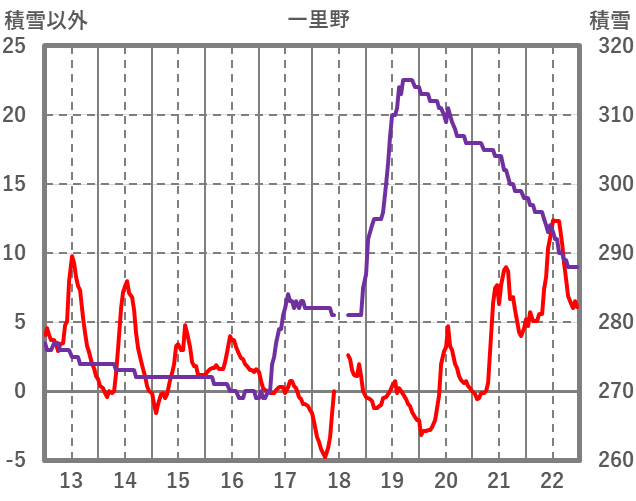 | 日 | 時 | 気温 | 降水 | 風向/風速 | 日照 | 積雪 | 降雪 |