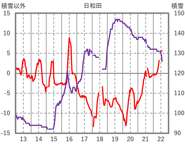 | 日 | 時 | 気温 | 降水 | 風向/風速 | 日照 | 積雪 | 降雪 |