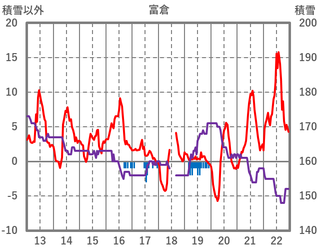 | 日 | 時 | 気温 | 降水 | 風向/風速 | 日照 | 積雪 | 降雪 |