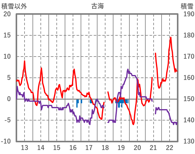 | 日 | 時 | 気温 | 降水 | 風向/風速 | 日照 | 積雪 | 降雪 |