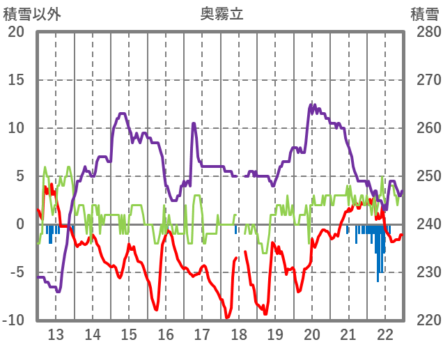 | 日 | 時 | 気温 | 降水 | 風向/風速 | 日照 | 積雪 | 降雪 |