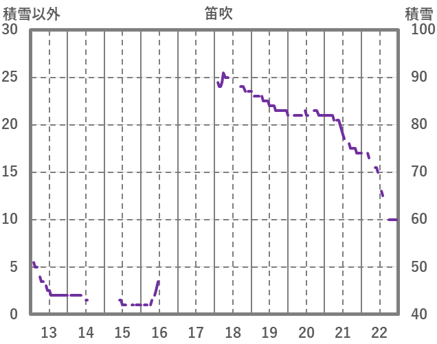 | 日 | 時 | 気温 | 降水 | 風向/風速 | 日照 | 積雪 | 降雪 |