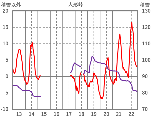 | 日 | 時 | 気温 | 降水 | 風向/風速 | 日照 | 積雪 | 降雪 |
