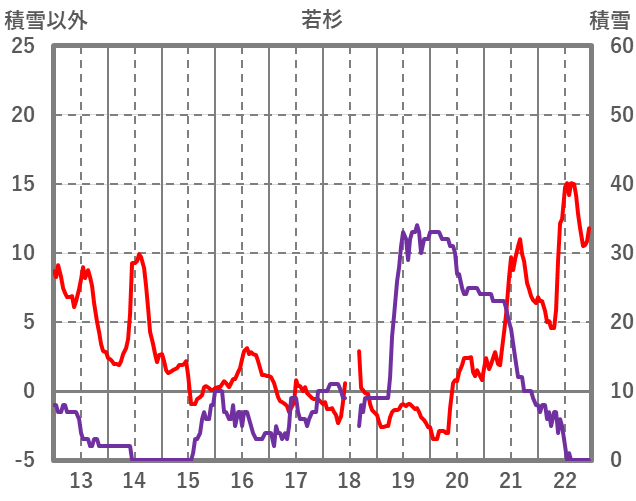 | 日 | 時 | 気温 | 降水 | 風向/風速 | 日照 | 積雪 | 降雪 |