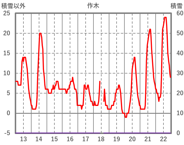 | 日 | 時 | 気温 | 降水 | 風向/風速 | 日照 | 積雪 | 降雪 |