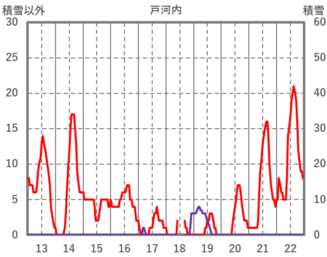 | 日 | 時 | 気温 | 降水 | 風向/風速 | 日照 | 積雪 | 降雪 |