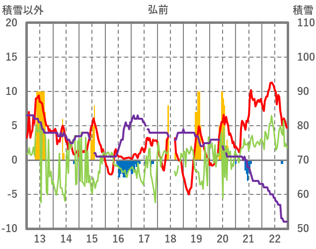 | 日 | 時 | 気温 | 降水 | 風向/風速 | 日照 | 積雪 | 降雪 |