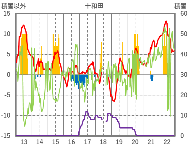 | 日 | 時 | 気温 | 降水 | 風向/風速 | 日照 | 積雪 | 降雪 |