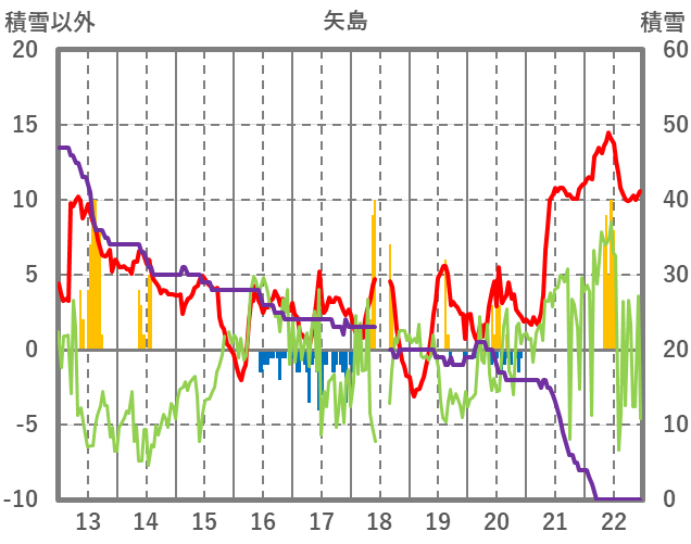 | 日 | 時 | 気温 | 降水 | 風向/風速 | 日照 | 積雪 | 降雪 |