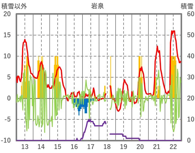 | 日 | 時 | 気温 | 降水 | 風向/風速 | 日照 | 積雪 | 降雪 |