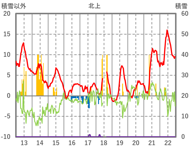 | 日 | 時 | 気温 | 降水 | 風向/風速 | 日照 | 積雪 | 降雪 |