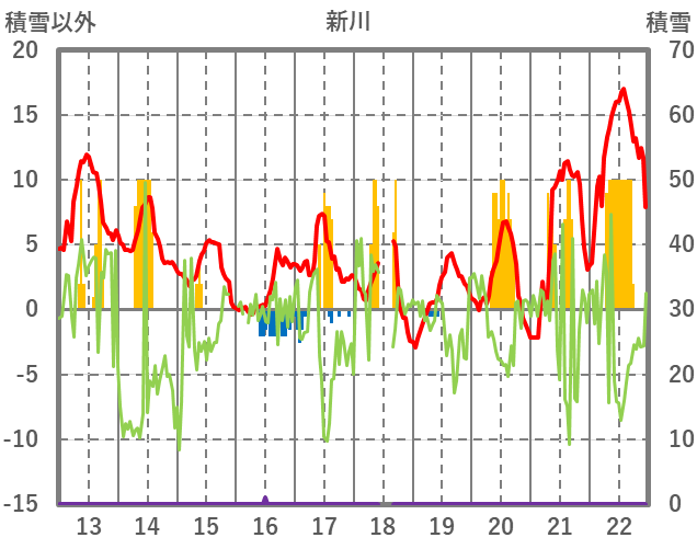 | 日 | 時 | 気温 | 降水 | 風向/風速 | 日照 | 積雪 | 降雪 |