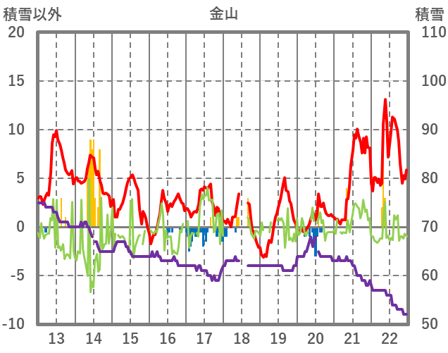 | 日 | 時 | 気温 | 降水 | 風向/風速 | 日照 | 積雪 | 降雪 |