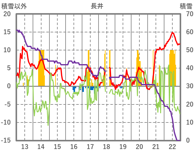 | 日 | 時 | 気温 | 降水 | 風向/風速 | 日照 | 積雪 | 降雪 |