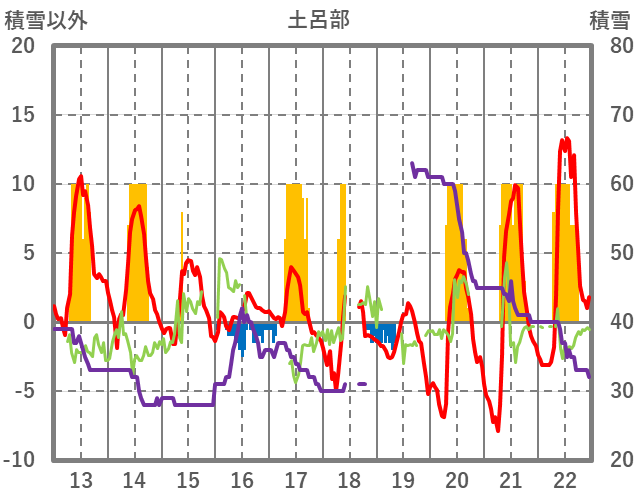 | 日 | 時 | 気温 | 降水 | 風向/風速 | 日照 | 積雪 | 降雪 |