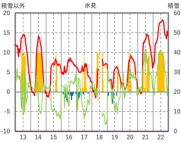 | 日 | 時 | 気温 | 降水 | 風向/風速 | 日照 | 積雪 | 降雪 |