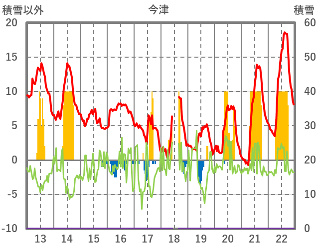 | 日 | 時 | 気温 | 降水 | 風向/風速 | 日照 | 積雪 | 降雪 |