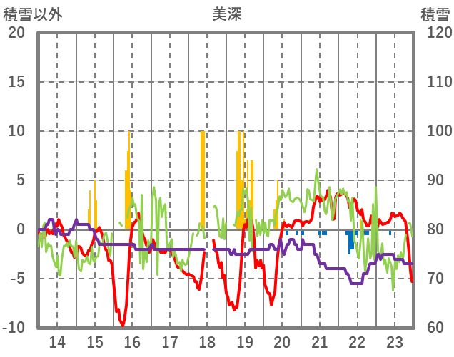 | 日 | 時 | 気温 | 降水 | 風向/風速 | 日照 | 積雪 | 降雪 |