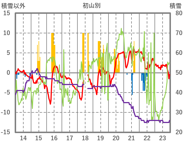 | 日 | 時 | 気温 | 降水 | 風向/風速 | 日照 | 積雪 | 降雪 |