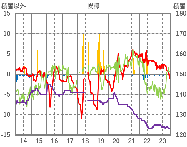 | 日 | 時 | 気温 | 降水 | 風向/風速 | 日照 | 積雪 | 降雪 |