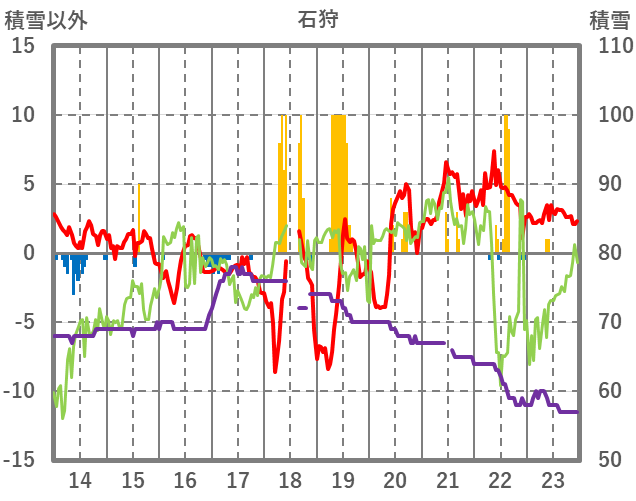 | 日 | 時 | 気温 | 降水 | 風向/風速 | 日照 | 積雪 | 降雪 |