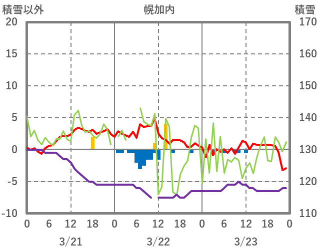 | 日 | 時 | 気温 | 降水 | 風向/風速 | 日照 | 積雪 | 降雪 |