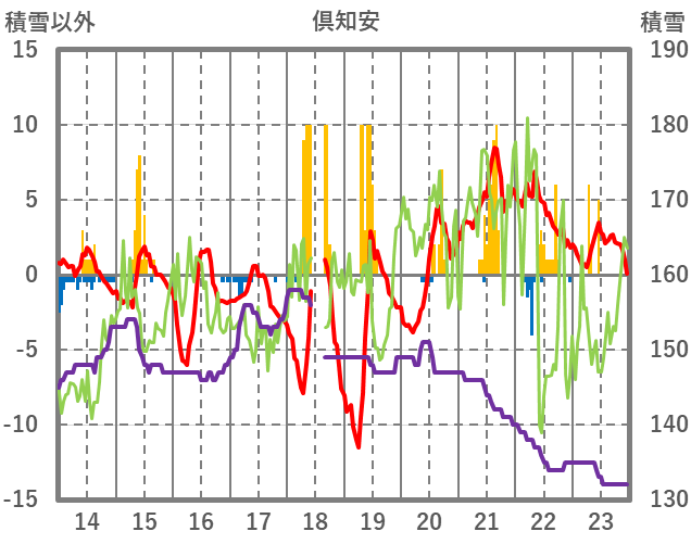 | 日 | 時 | 気温 | 降水 | 風向/風速 | 日照 | 積雪 | 降雪 |
