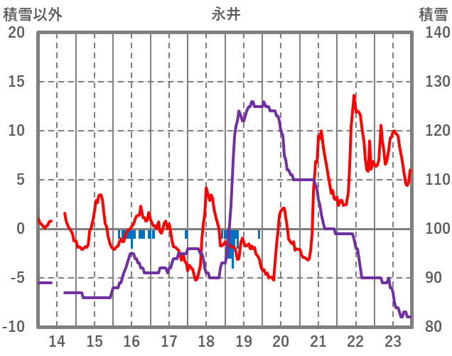 | 日 | 時 | 気温 | 降水 | 風向/風速 | 日照 | 積雪 | 降雪 |