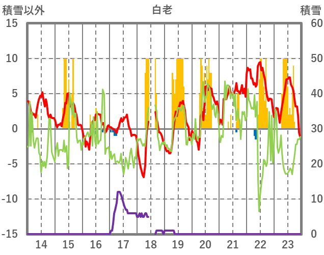 | 日 | 時 | 気温 | 降水 | 風向/風速 | 日照 | 積雪 | 降雪 |