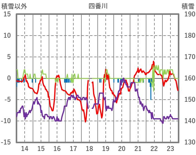 | 日 | 時 | 気温 | 降水 | 風向/風速 | 日照 | 積雪 | 降雪 |